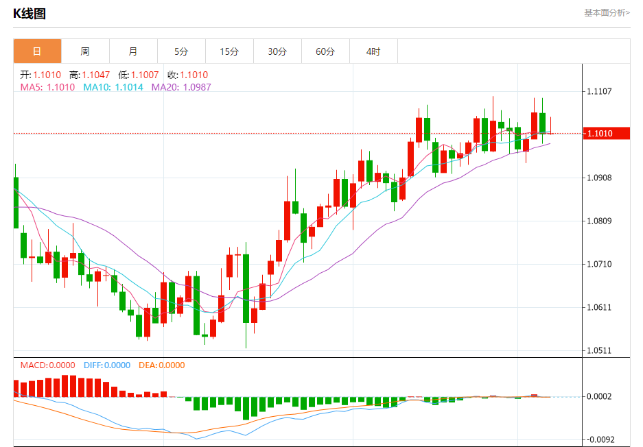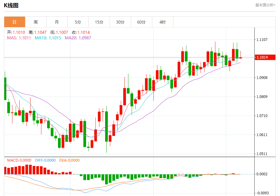 周五晚间,美元指数现报101.393,跌幅0.04%,现对美元兑欧元、英镑、日元主要货币对分析表述如下: 欧元/美元 汇价高见1.1047,低见1.1008。上一交易日,汇价收于1.1009。 基本面:英杰华投资公司利率主管表示,欧洲央行已经非常明确地表示,核心通胀压力仍然太大,这是欧洲