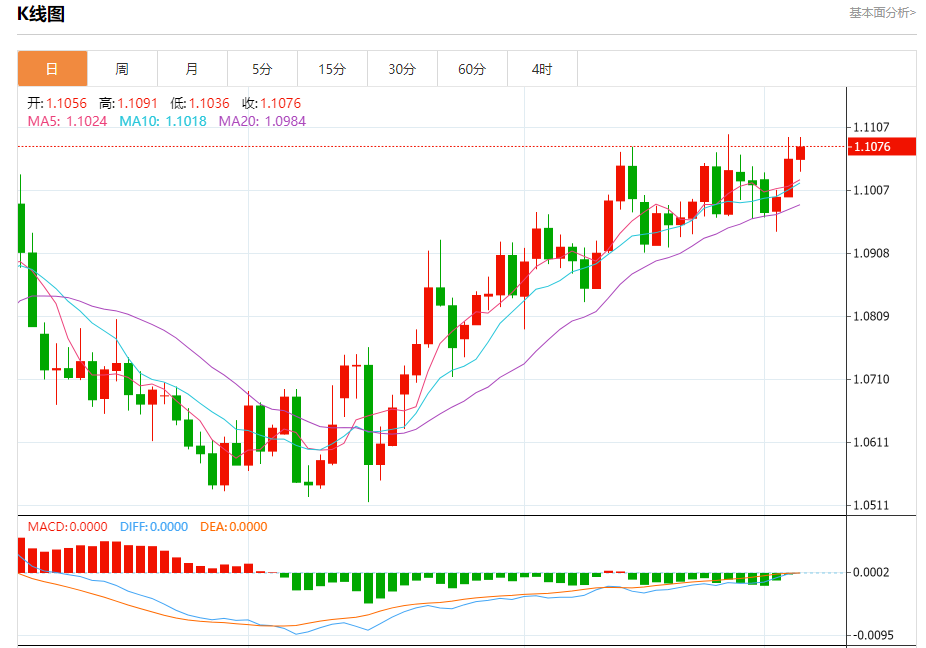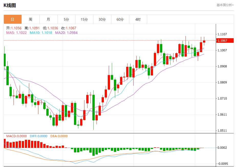 周四晚间,美元指数现报101.159,跌幅0.12%,现对美元兑欧元、英镑、日元主要货币对分析表述如下: 欧元/美元 汇价高见1.1091,低见1.1036。上一交易日,汇价收于1.1057。 基本面:欧洲4月份通胀率自去年9月以来首次上升,但欧盟统计局的一份报告显示,更受关注的核心通胀指