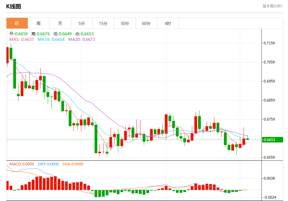 今日周三,澳元兑美元报0.6655,跌幅0.07%;美元兑加元报1.3635,涨幅0.09%;美元兑瑞郎报0.8890,跌幅0.42%。 澳元兑美元汇率分析 技术点评:只要依旧存在0.6685阻力位,价格波动存在看跌的趋势。 阻力位:0.67150.67000.6685 支撑位:0.66500.66350.6620
