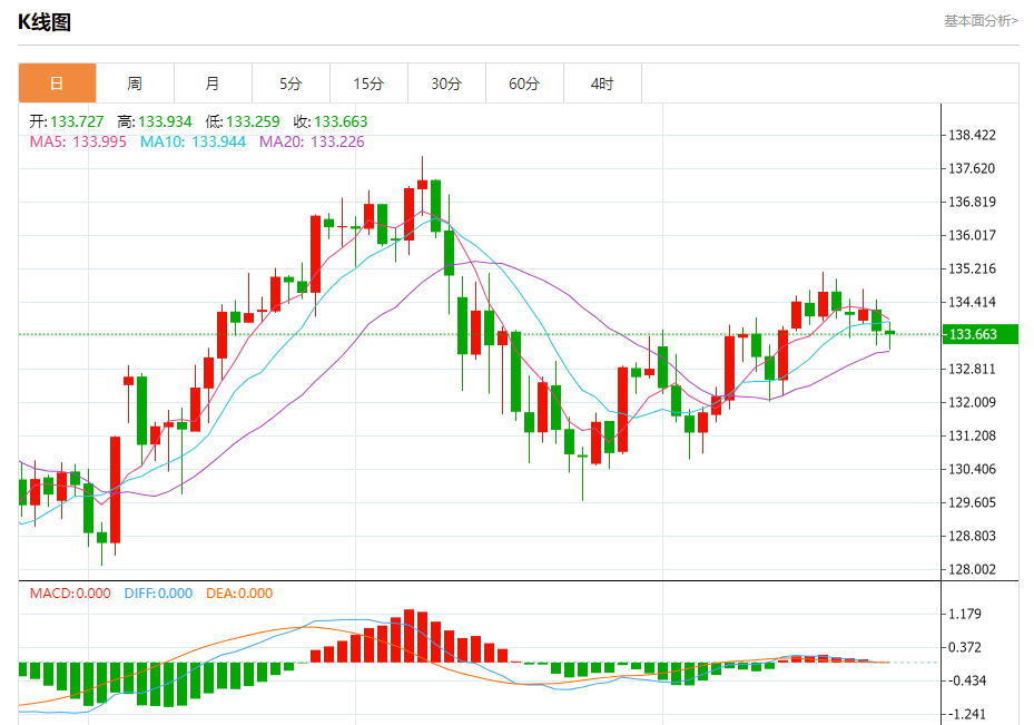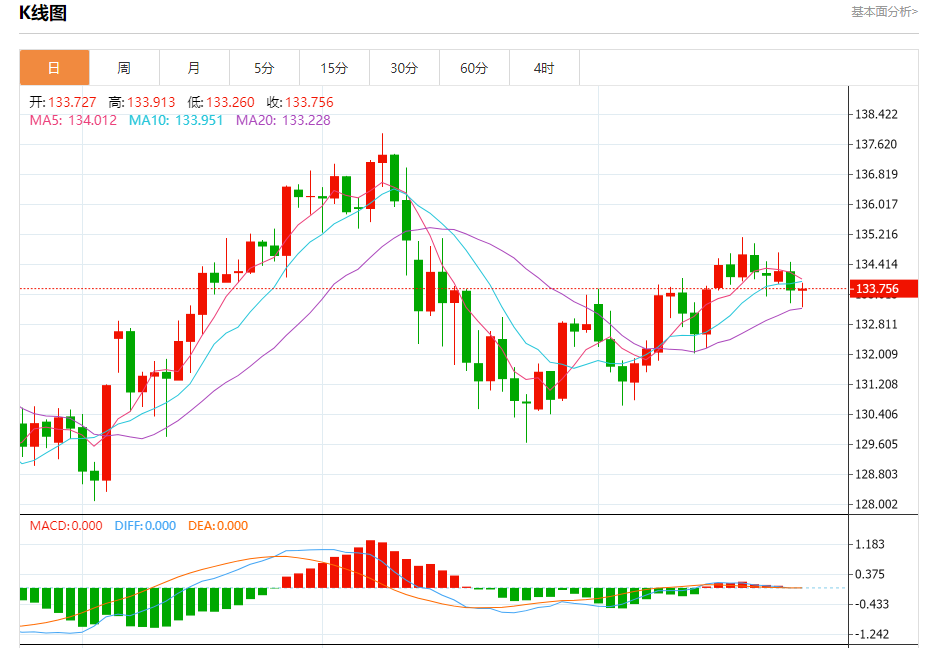 周三盘中,美元/日元报133.690,跌幅0.04%。 今日分析:在133.85之下,看跌,目标价位为133.20,然后为132.90。 技术点评:RI技术指标运行趋势复杂,倾向于下跌。 支撑位:133.20132.90132.75 阻力位:134.25134.00133.85 (亚汇网编辑:冰凡)