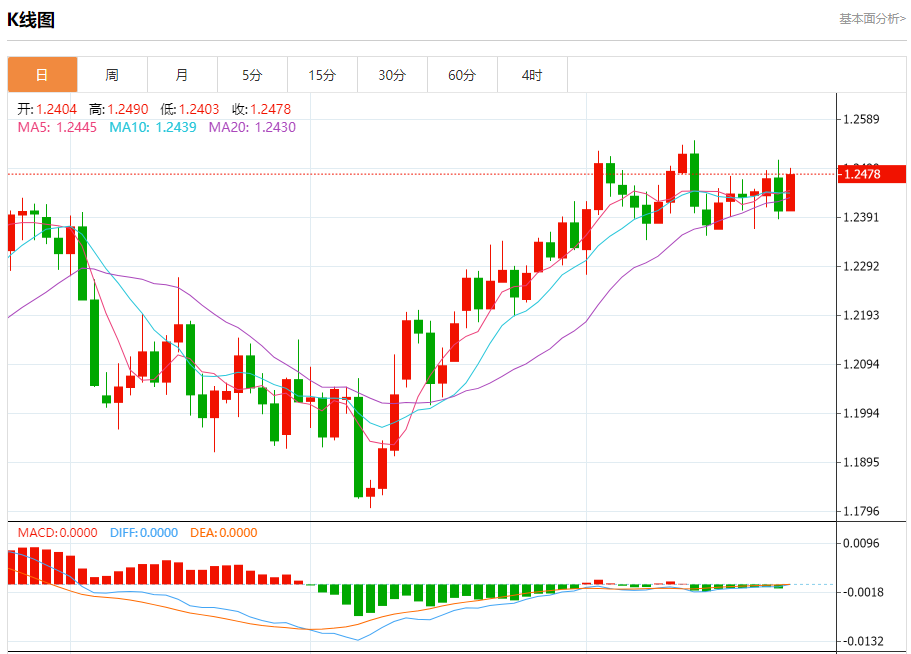 周三盘中,英镑/美元报1.2474,涨幅0.55%。 今日分析:在1.2415之上,看涨,目标价位为1.2505,然后为1.2520。 技术点评:RI技术指标向上运行。 支撑位:1.24151.24001.2385 阻力位:1.25351.25201.2505 (亚汇网编辑:冰凡)