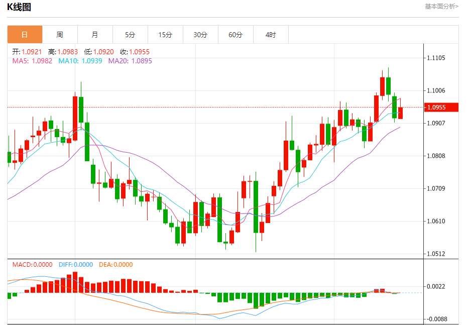 周二盘中,欧元/美元报1.0957,涨幅0.30%。 今日分析:在1.0930之上,看涨,目标价位为1.1000,然后为1.1030。 技术点评:RI技术指标向上运行。 支撑位:1.09301.09051.0880 阻力位:1.10451.10301.1000 (亚汇网编辑:冰凡)