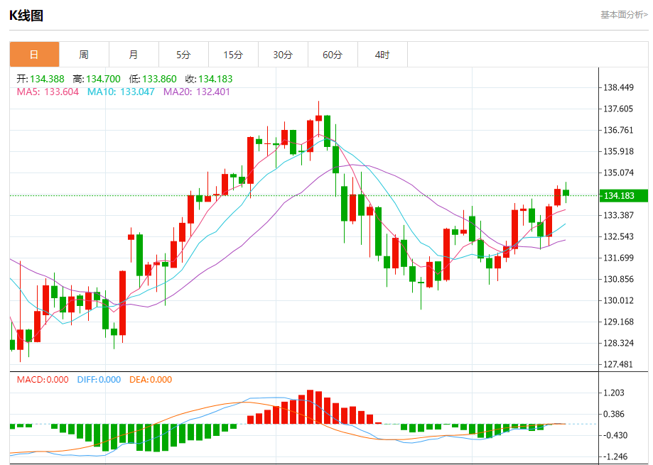 周二纽盘,日元兑美元交投于134.894,跌幅为0.40%。 日元基本面分析 日债收益率周二(18日)延续上行,由于周初缺乏进一步消息和数据的指引,市场整体波动不大,短债显示小幅“补跌”态势。 一级市场方面,日本财务省稍早进行的流动性增强招标结果显示,实际中标数量4988亿日