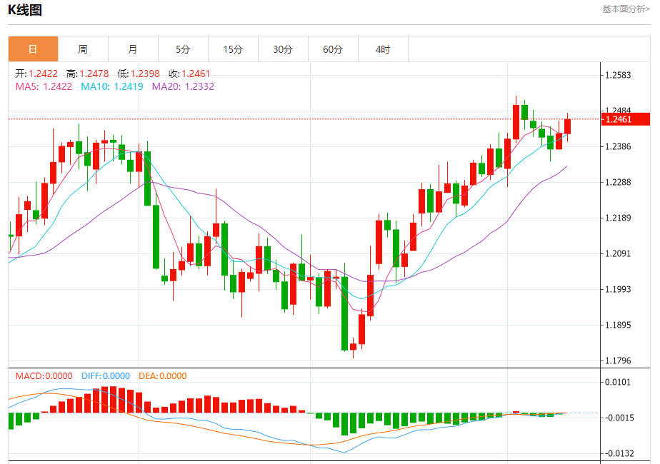 今日周三,欧元兑美元报1.0924,涨幅0.14%;英镑兑美元报1.2407,跌幅0.12%;美元兑日元报133.762,涨幅0.08%。 欧元兑美元汇率分析 技术点评:RI技术指标向上运行。 阻力位:1.09701.09501.0940 支撑位:1.09051.08901.0875 英镑兑美元汇率分析