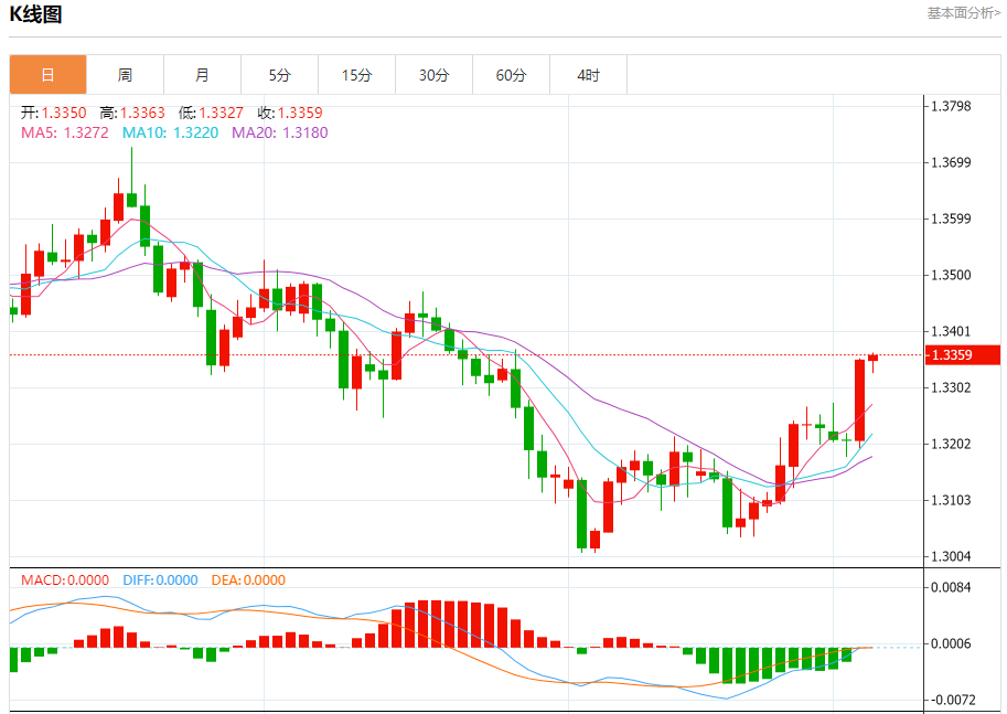 周四盘中,英镑/美元报1.3350,涨幅0%。 今日分析:在1.3323之上,看涨,目标价位为1.3380,然后为1.3415。 技术点评:RI技术指标看涨,有进一步向上趋势。 支撑位:1.33231.32901.3265 阻力位:1.34501.34151.3380 (亚汇网编辑:冰凡)