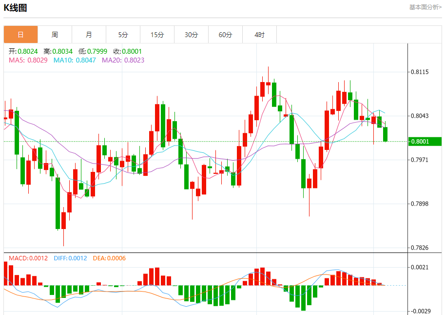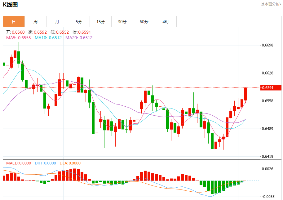 今日周三,澳元兑美元报0.6592,涨幅0.44%;美元兑加元报1.3944,跌幅0.16%;美元兑瑞郎报0.8004,跌幅0.32%。 澳元兑美元汇率分析 技术点评:RI技术指标看涨,有进一步向上趋势。 阻力位:0.66300.66200.6600 支撑位:0.65600.65400.6520 美元兑