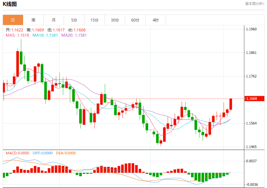 今日周三,欧元兑美元报1.1667,涨幅0.39%;英镑兑美元报1.3300,涨幅0.67%;美元兑日元报155.400,跌幅0.28%。 欧元兑美元汇率分析 技术点评:RI技术指标呈现继续上升趋势。 阻力位:1.17201.17001.1675 支撑位:1.16341.16151.1600 英镑兑美元