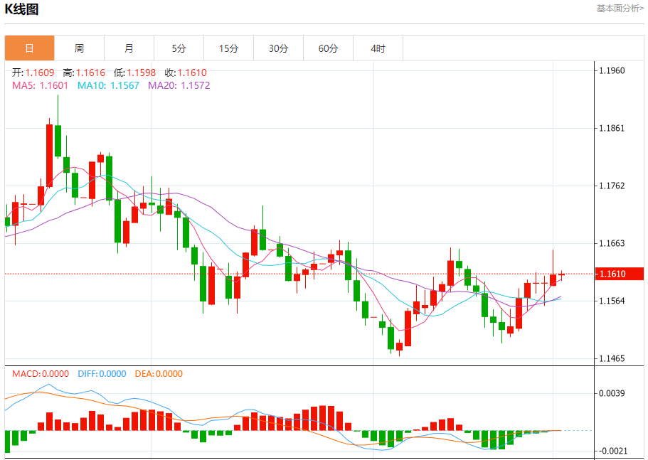 今日周二,截止目前欧元兑美元报1.1611,上涨0.01%。 欧元基本面行情分析 欧洲央行管委artiKochr在接受采访时表示,欧洲央行无需对通胀率在2%目标附近的小幅波动作出反应,而应保持弹性,以便在政策调整必要时能够及时应对。 Kochr表示,“我们不能也不应该通过货币政策