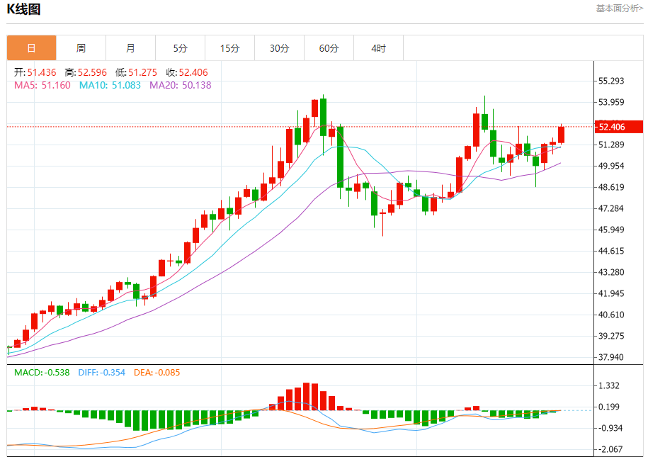 周三盘中,现货白银报52.460,涨幅1.81%。 今日分析:在51.70之上,看涨,目标价位为52.85,然后为53.50。 技术点评:RI技术指标看涨,有进一步上升空间。 支撑位:51.7051.1050.53 阻力位:54.1053.5052.85 (亚汇网编辑:冰凡)