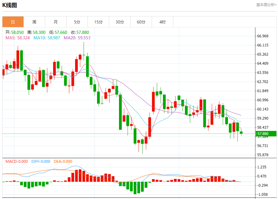 周三盘中,WTI原油报57.880,跌幅0.12%。 今日分析:在58.30之下,看跌,目标价位为57.50,然后为57.10。 技术点评:超短线(当日内)技术指标运行趋势复杂,应谨慎操作。 支撑位:57.5057.1056.60 阻力位:59.0558.6558.30 (亚汇网编辑:冰凡)