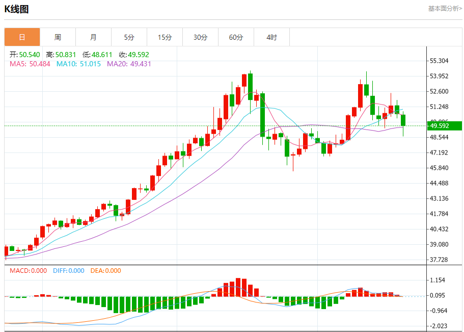 周五盘中,现货白银报49.680,跌幅1.88%。 今日分析:在50.45之下,看跌,目标价位为48.40,然后为47.70。 技术点评:即使我们不能排除持续技术反弹的可能性,其时间长度上,应该是有限的。 支撑位:48.4047.7046.90 阻力位:51.8551.3050.45 (亚
