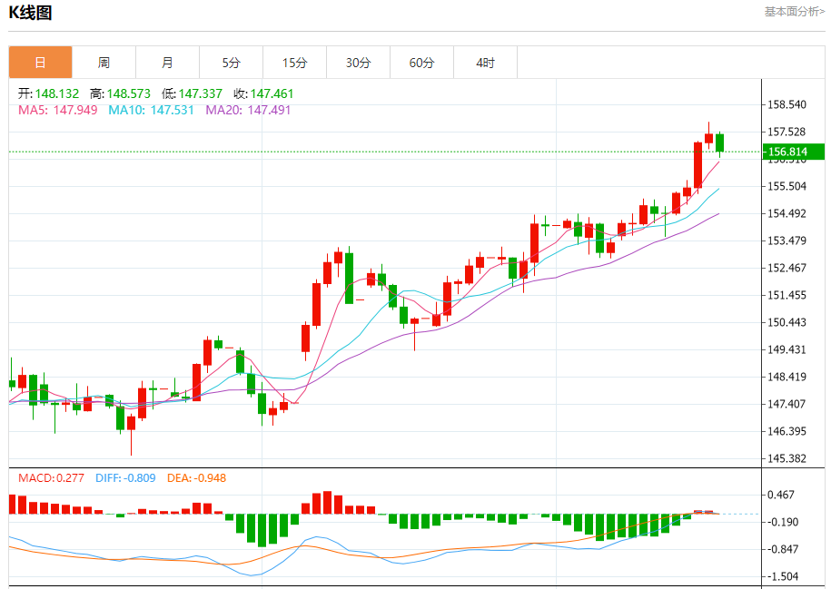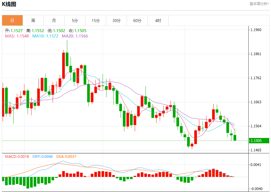 今日周五,截止目前欧元兑美元报1.1507,下跌0.18%。 欧元基本面分析 欧洲央行行长拉加德:欧洲央行将根据需要继续调整政策。欧洲央行降息举措正日益为融资条件提供支持。 财政刺激方案将产生可衡量的增长效应。欧洲若在改革方面无所作为将是不负责任的。欧洲央行正在通过提