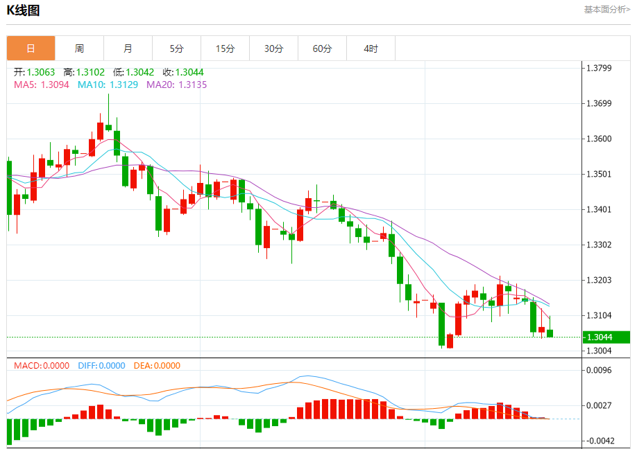 周五盘中,英镑/美元报1.3078,涨幅0.06%。 今日分析:在1.3080之下,看跌,目标价位为1.3010,然后为1.2970。 技术点评:只要依旧存在1.3080阻力位,价格波动存在看跌的趋势。 支撑位:1.30101.29701.2950 阻力位:1.31201.31051.3080 (亚汇网编
