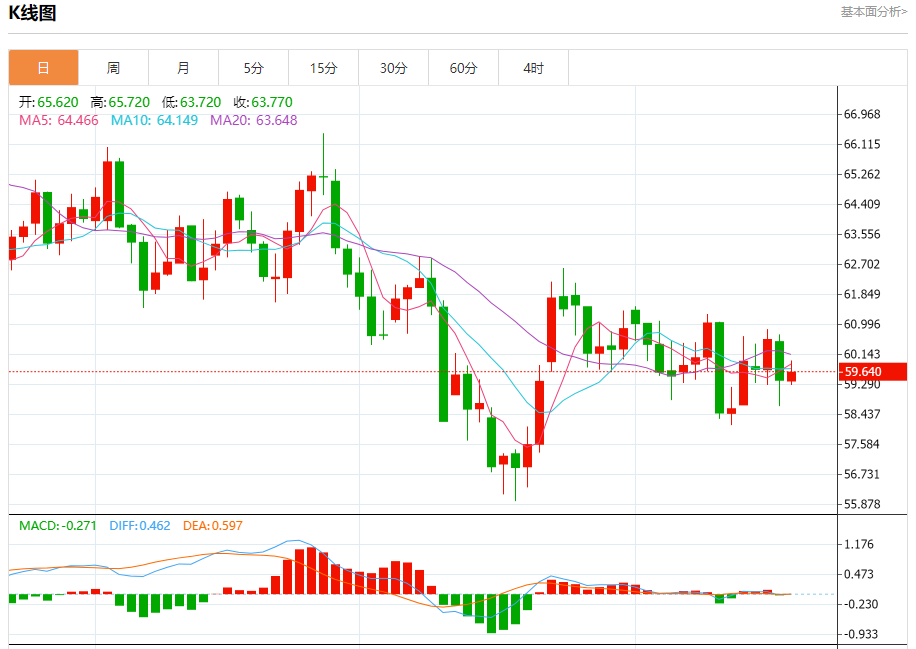 周四盘中,WTI原油报59.630,涨幅0.64%。 今日分析:在59.15之上,看涨,目标价位为60.05,然后为60.45。 技术点评:RI技术指标呈现继续上升趋势。 支撑位:59.1558.9058.70 阻力位:60.8560.4560.05 (亚汇网编辑:冰凡)