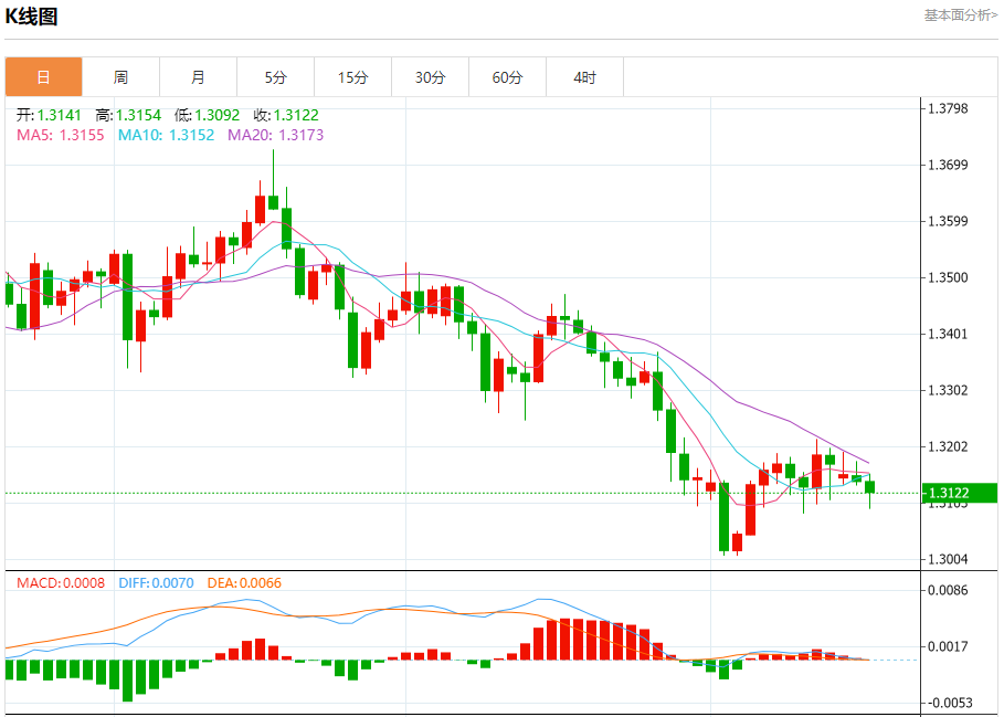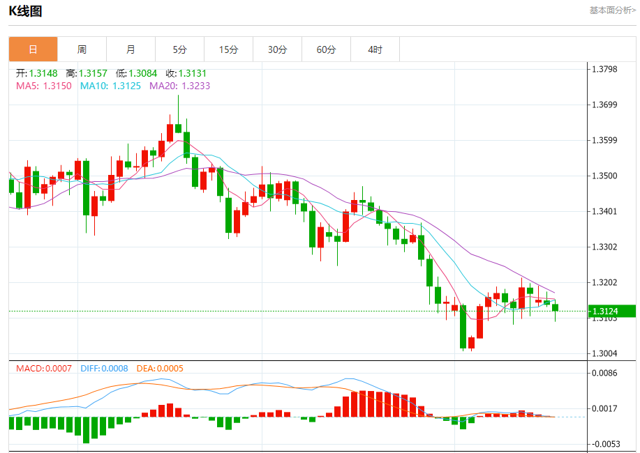 周三盘中,英镑/美元报1.3120,跌幅0.16%。 今日分析:在1.3170之下,看跌,目标价位为1.3100,然后为1.3075。 技术点评:即使我们不能排除持续技术反弹的可能性,其时间长度上,应该是有限的。 支撑位:1.31001.30751.3050 阻力位:1.32101.31901.3170