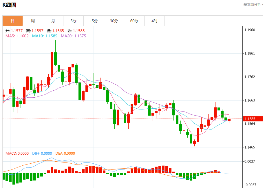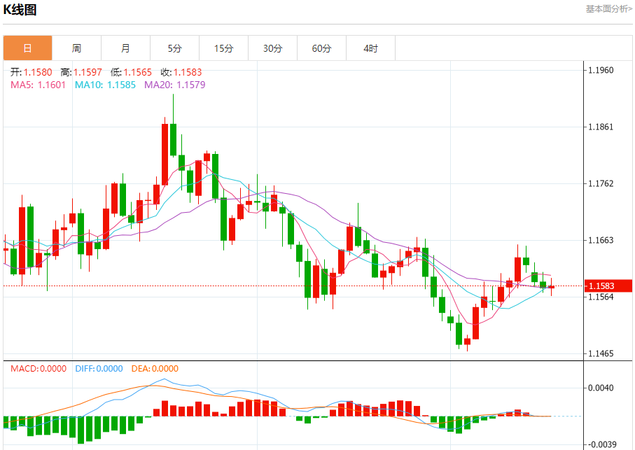 周三盘中,欧元/美元报1.1582,涨幅0.02%。 今日分析:在1.1605之下,看跌,目标价位为1.1565,然后为1.1550。 技术点评:即使我们不能排除持续技术反弹的可能性,其时间长度上,应该是有限的。 支撑位:1.15651.15501.1530 阻力位:1.16351.16201.1605