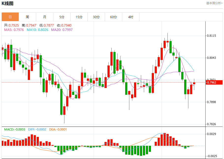 周二纽盘,瑞郎兑美元交投于0.7964,涨幅为0.08%。 瑞郎基本面分析 货币政策宽松基调明确,央行已连续第六次降息,将政策利率降至0%,且明确表示因通胀压力下降与瑞郎走强风险,不排除再次实施负利率政策。 当前瑞士面临通缩压力,消费者价格指数已降至负值,经济增长动能不