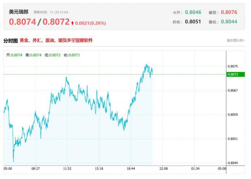 美元兑瑞士法郎今日汇率最高0.8074,最低0.8072,涨跌0.0021,涨跌幅0.26%。 市场基本面分析 美元兑瑞士法郎汇率波动的核心驱动,在于美瑞货币政策分化、瑞士经济复苏节奏及市场避险情绪。瑞士方面,三季度CI同比1.7%维持在央行0-2%目标区间内,核心通胀低位运行令瑞士央行释放“政策