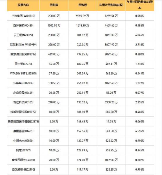 10月16日港股回购概况: 中国恒有源集团(08128)、方正控股(00418)、摩比发展(00947)、永安国际(00289)、天福(06868)、心玮医疗-(06609)、VITAOYIT'L(00345)、力鸿检验(01586)、信利国际(00732)、晨讯科技(02000)、网龙(00777)、归创通桥-(02190)、首佳科技(00103)、IG