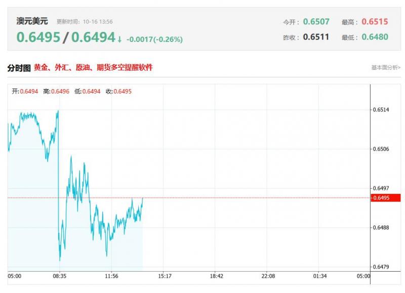 澳元兑美元今日汇率最高0.6495,最低0.6494,涨跌-0.0017,涨跌幅-0.26%。 市场基本面分析 澳大利亚统计局周四公布的数据显示,9月就业人口变动为增加1.49万人,低于市场预期的2万人。前值由下降5.4万人修正为下降1.18万人。与此同时,失业率从8月的4.3%(从4.2%修正)升至4.5%,高于市