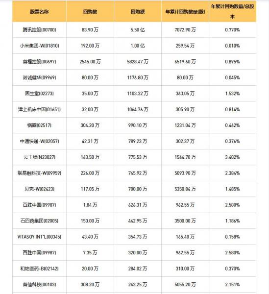 10月13日港股回购概况: 石四药集团(02005)、方正控股(00418)、摩比发展(00947)、天福(06868)、永安国际(00289)、万咖壹联(01762)、VITAOYIT'L(00345)、腾讯控股(00700)、固生堂(02273)、明源云(00909)、百宏实业(02299)、希玛眼科(03309)、归创通桥-(02190)、力鸿检验