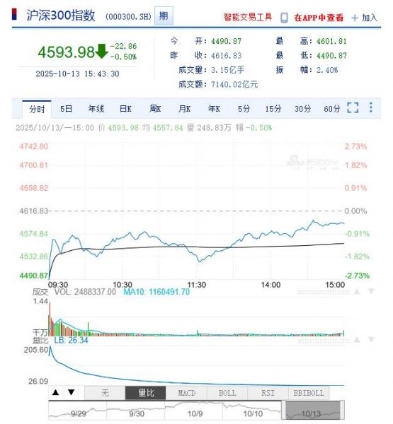 2025年10月14日星期二,以下是由亚汇网整理的昨夜今晨中国财经要闻汇总: 国内股市 一、昨日A股方面,沪指跌0.19%报3889点,深证成指跌0.93%,创业板指跌1.11%,科创50指数逆市涨1.4%。全市场成交额2.37万亿元。稀土板块爆发,贵金属、黄金板块活跃,光刻机概念股走高;机器人、减速器板块