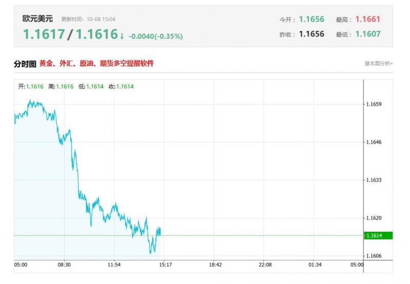 今日市场基本面重要行情 一、美元逆势回暖交易员称美国是“最不坏的选择” 10月8日讯,周三,受亚太至欧洲地区的财政与经济担忧拖累,美元兑十国集团其他成员国货币汇率走高,逼近两个月以来的高点。据亚太地区交易员透露,对冲基金增加了针对欧元与日元的看跌期权押注,为美元走强提供