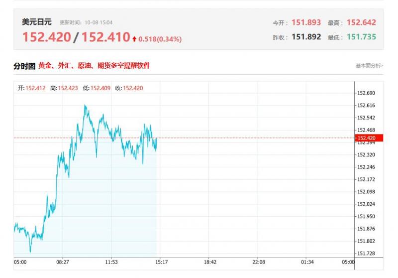 美元兑日元今日汇率最高152.420,最低152.410,涨跌0.518,涨跌幅0.34%。 市场基本面分析 随着日本即将迎来新首相高市早苗,其明显倾向扩张性财政政策,以及她的经济顾问公开表示“10月加息为时尚早”,市场普遍下调对日本央行(oJ)近期加息的期待,使得日元承压继续走弱。同时,美元在