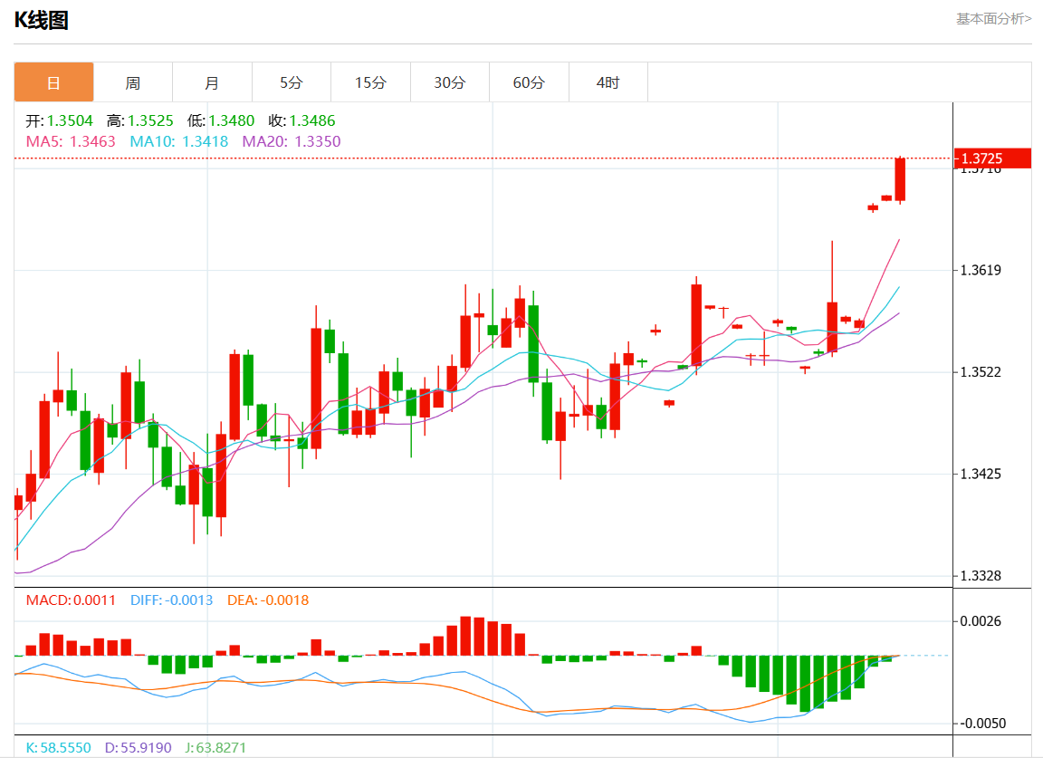 周五盘中,美元/加元报1.3724,涨幅0.26%。 今日分析:在1.3725之下,看跌,目标价位为1.3660,然后为1.3640。 技术点评:RI技术指标缺乏上升动能。 支撑位:1.37751.37501.3725 阻力位:1.36601.36401.3620 (亚汇网编辑:静香)