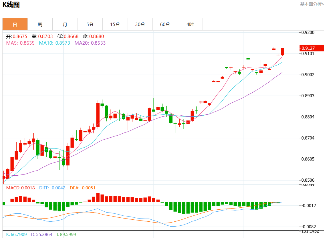 周五盘中,美元/瑞元报0.9127,涨幅0.31%。 今日分析:在0.9125之下,看跌,目标价位为0.9075,然后为0.9055。 技术点评:RI技术指标缺乏上升动能。 支撑位:0.91650.91450.9125 阻力位:0.90750.90550.9040 (亚汇网编辑:静香)