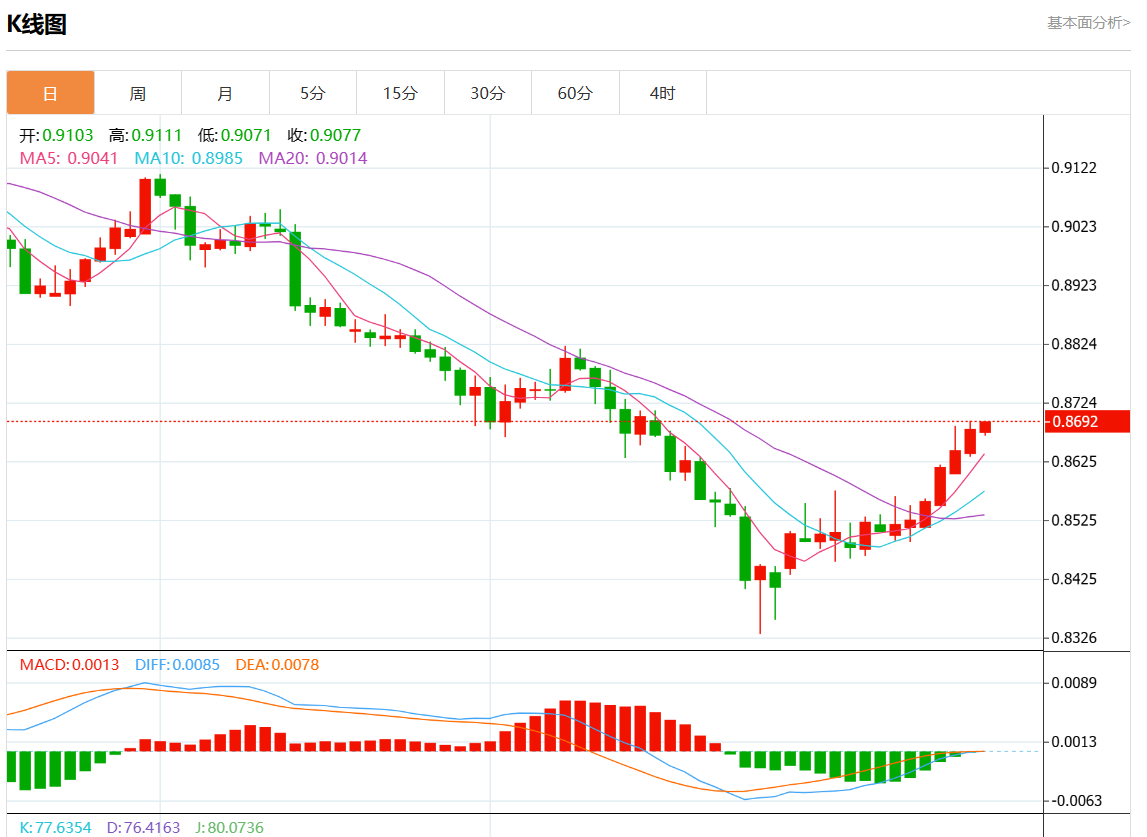 周五盘中,美元/瑞元报0.8692,涨幅0.14%。 今日分析:在0.8660上方做多头,目标在0.8700和0.8720。 技术点评:RI显示出上行动能。 支撑位:0.87400.87200.8700 阻力位:0.86600.86450.8630 (亚汇网编辑:静香)