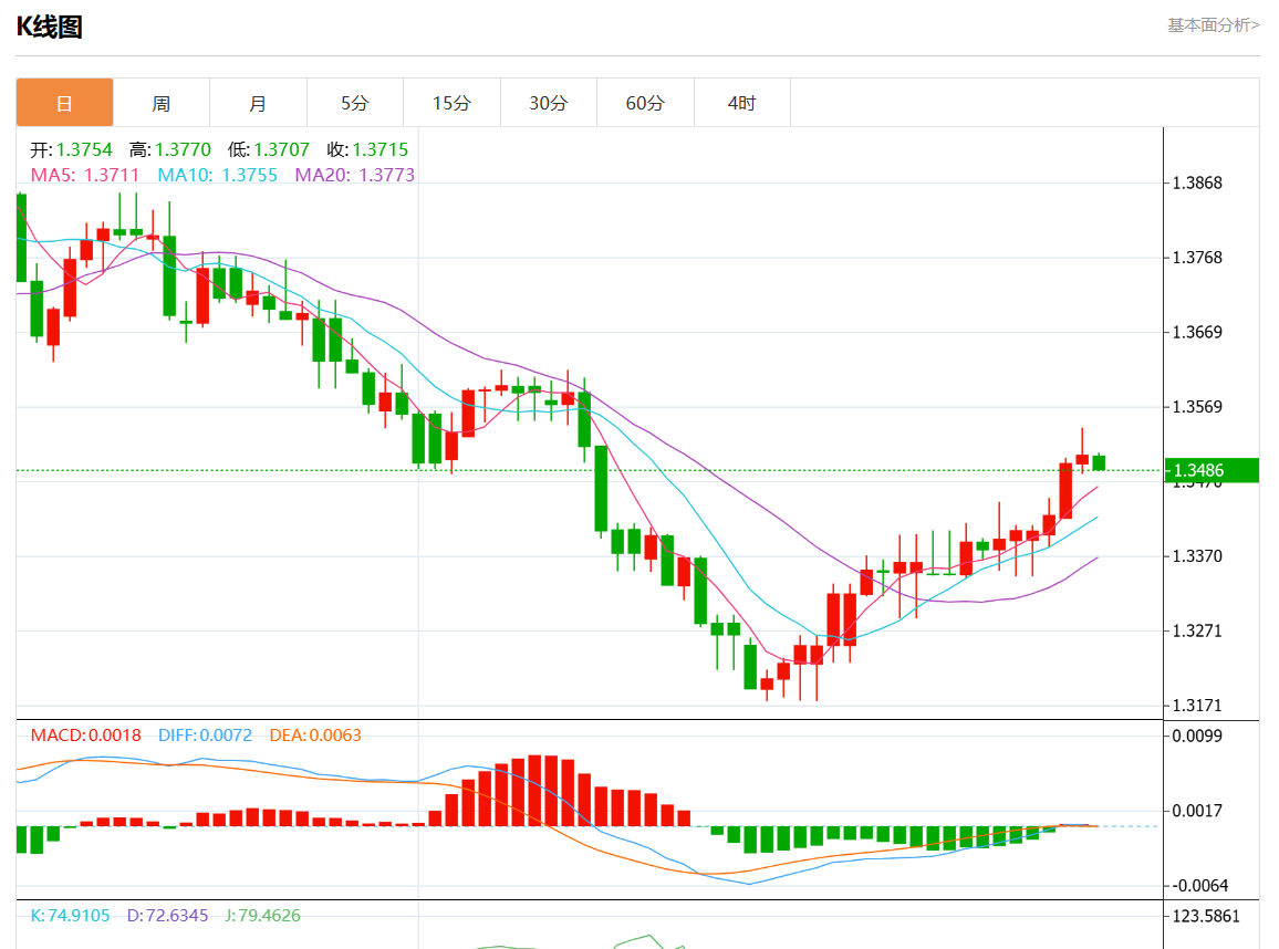 周四盘中,美元/加元报1.3486,跌幅0.14%。 今日分析:在1.3515之下,看跌,目标价位为1.3470,然后为1.3455. 技术点评:RI技术指标向下运行。 支撑位:1.35551.35351.3515 阻力位:1.34701.34551.3440 (亚汇网编辑:静香)