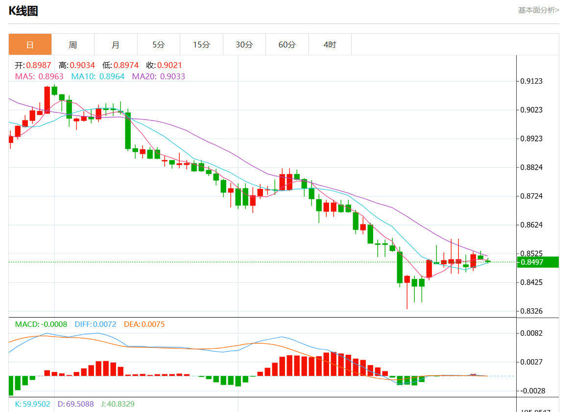 周四盘中,美元/瑞元报0.8496,跌幅0.13%。 今日分析:在0.8520下方做空,目标在0.8480和0.8460. 技术点评:RI看跌,并呼吁进一步下跌。 支撑位:0.85500.85350.8520 阻力位:0.84800.84600.8440 (亚汇网编辑:静香)