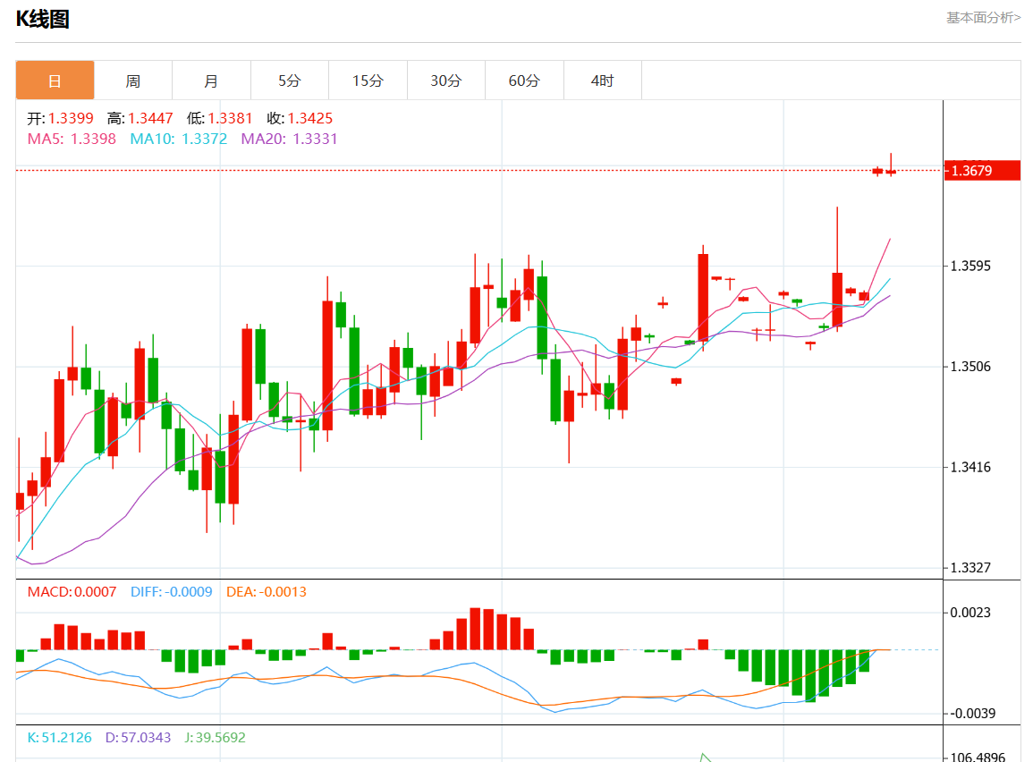 周四盘中,美元/加元报1.3681,涨幅0.01%。 今日分析:在1.3650之上,看涨,目标价位为1.3710,然后为1.3735。 技术点评:即使我们不能排除持续调整的可能性,其时间长度上,应该是有限的。 支撑位:1.37601.37351.3710 阻力位:1.36501.36251.3600