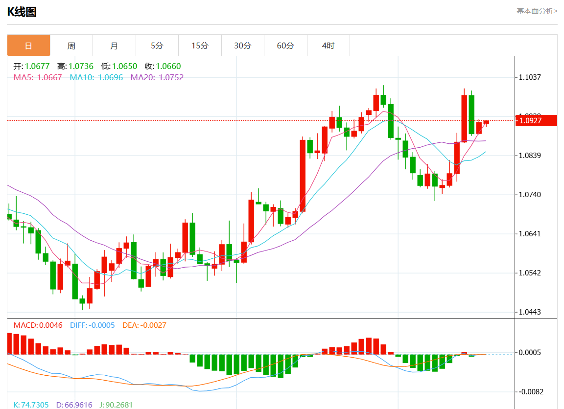 周二欧市盘中,欧元/美元最新报1.0927,日图涨0.04%. 今日分析:在1.0890上方做多头,目标在1.0945和1.0970。 技术点评:RI显示出上行动能。 支撑位:1.09951.09701.0945 阻力位:1.08901.08601.0830 (亚汇网编辑:静香)