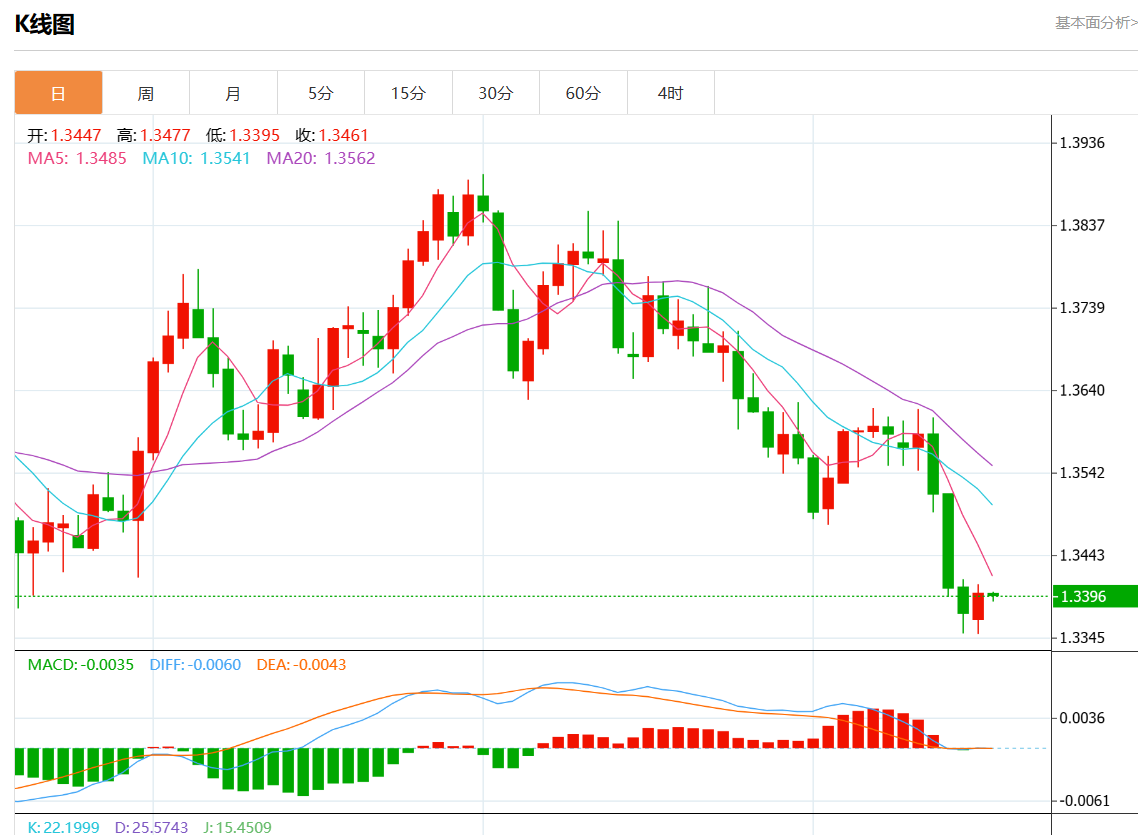 周一盘中,美元/加元报1.3397,跌幅0.01%。 今日分析:在1.3345上方做多头,目标在1.3430和1.3460。 技术点评:RI与看涨偏见混合在一起。 支撑位:1.34801.34601.3430 阻力位:1.33451.33201.3300 (亚汇网编辑:静香)
