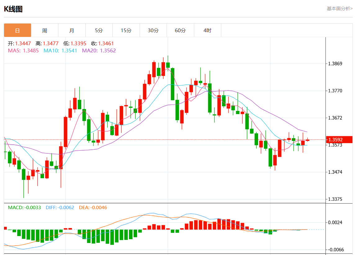 周三盘中,美元/加元报1.3597,涨幅0.07%。 今日分析:在1.3575上方做多头,目标在1.3605和1.3620。 技术点评:RI缺乏下行动力。 支撑位:1.36351.36201.3605 阻力位:1.35751.35601.3545 (亚汇网编辑:静香)