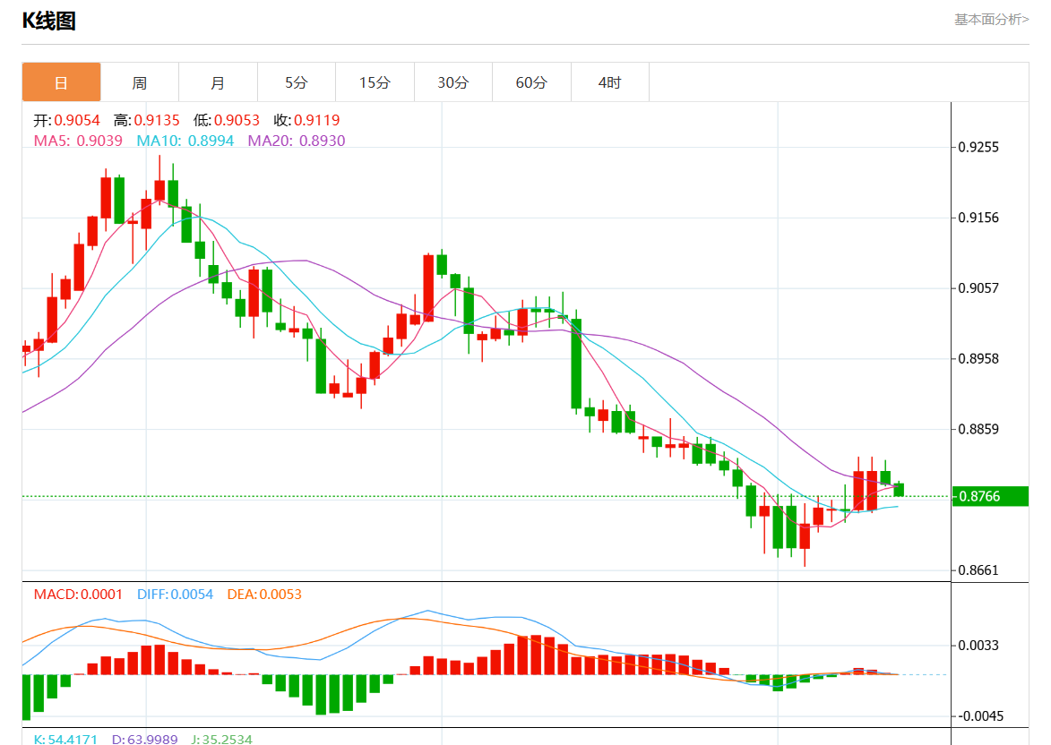 周二盘中,美元/瑞元报0.8769,跌幅0.19%。 今日分析:在0.8800下方做空,目标在0.8745和0.8725。 技术点评:RI与看跌偏见混合在一起。 支撑位:0.88300.88150.8800 阻力位:0.87450.87250.8710 (亚汇网编辑:静香)