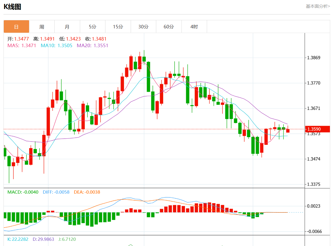 周一盘中,美元/加元报1.3592,涨幅0.03%。 今日分析:在1.3570上方做多头,目标在1.3610和1.3630。 技术点评:RI缺乏下行动力。 支撑位:1.36501.36301.3610 阻力位:1.35701.35451.3525 (亚汇网编辑:静香)