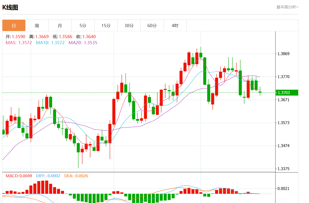周一盘中,美元/加元报1.3702,跌幅0.09%。 今日分析:在1.3725下方做空,目标在1.3680和1.3655。 技术点评:RI显示出下行动能。 支撑位:1.37701.37451.3725 阻力位:1.36801.36551.3630 (亚汇网编辑:静香)
