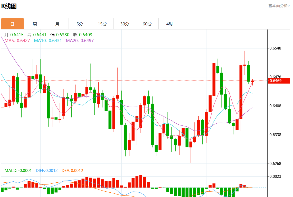 周五盘中,澳元/美元报0.6470,涨幅0.04%。 今日分析:在0.6485下方做空,目标在0.6435和0.6415。 技术点评:RI缺乏上行动力。 支撑位:0.65200.65000.6485 阻力位:0.64350.64150.6400 (亚汇网编辑:静香)