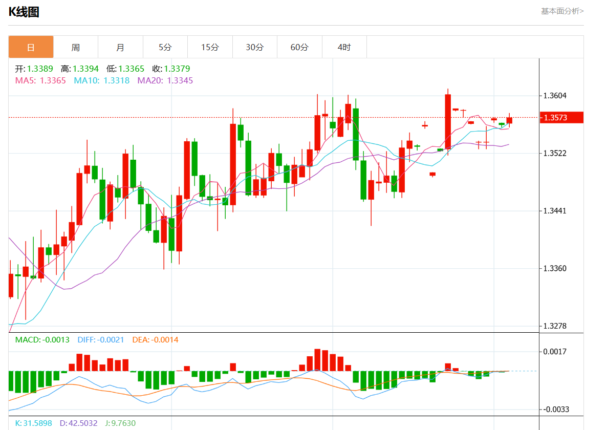 周三盘中,美元/加元报1.3575,涨幅0.07%。 今日分析:在1.3350之上,看涨,目标价位为1.3620,然后为1.3760。 技术点评:RI技术指标向上运行。 支撑位:1.39001.37601.3620 阻力位:1.33501.32801.3175 (亚汇网编辑:静香)