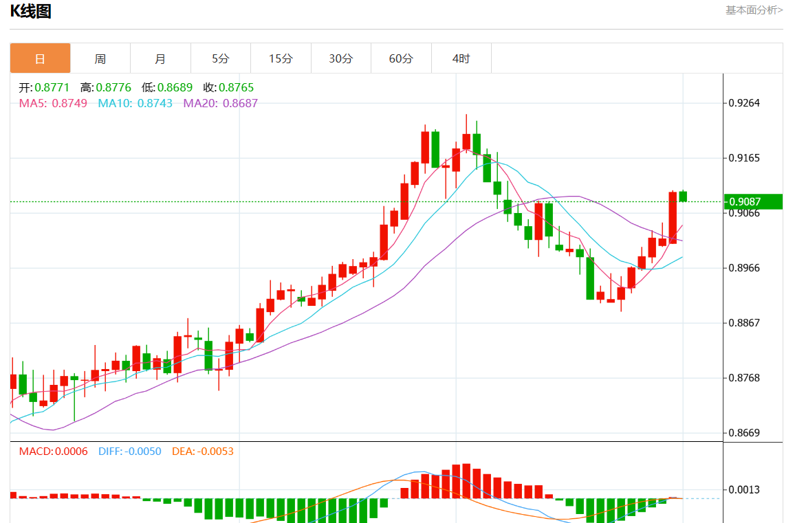周三盘中,美元/瑞元报0.9085,跌幅0.20%。 今日分析:在0.9075上方做多头,目标在0.9120和0.9140。 技术点评:RI涨跌互现。 支撑位:0.91600.91400.9120 阻力位:0.90750.90500.9030 (亚汇网编辑:静香)