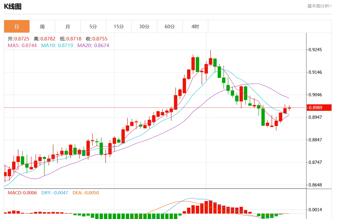 周五盘中,美元/瑞元报0.8988,涨幅0.02%。 今日分析:在0.8975上方建立多头头寸,目标在0.9000和0.9015。 技术点评:RI涨跌互现。 支撑位:0.90300.90150.9000 阻力位:0.89750.89600.8945 (亚汇网编辑:静香)