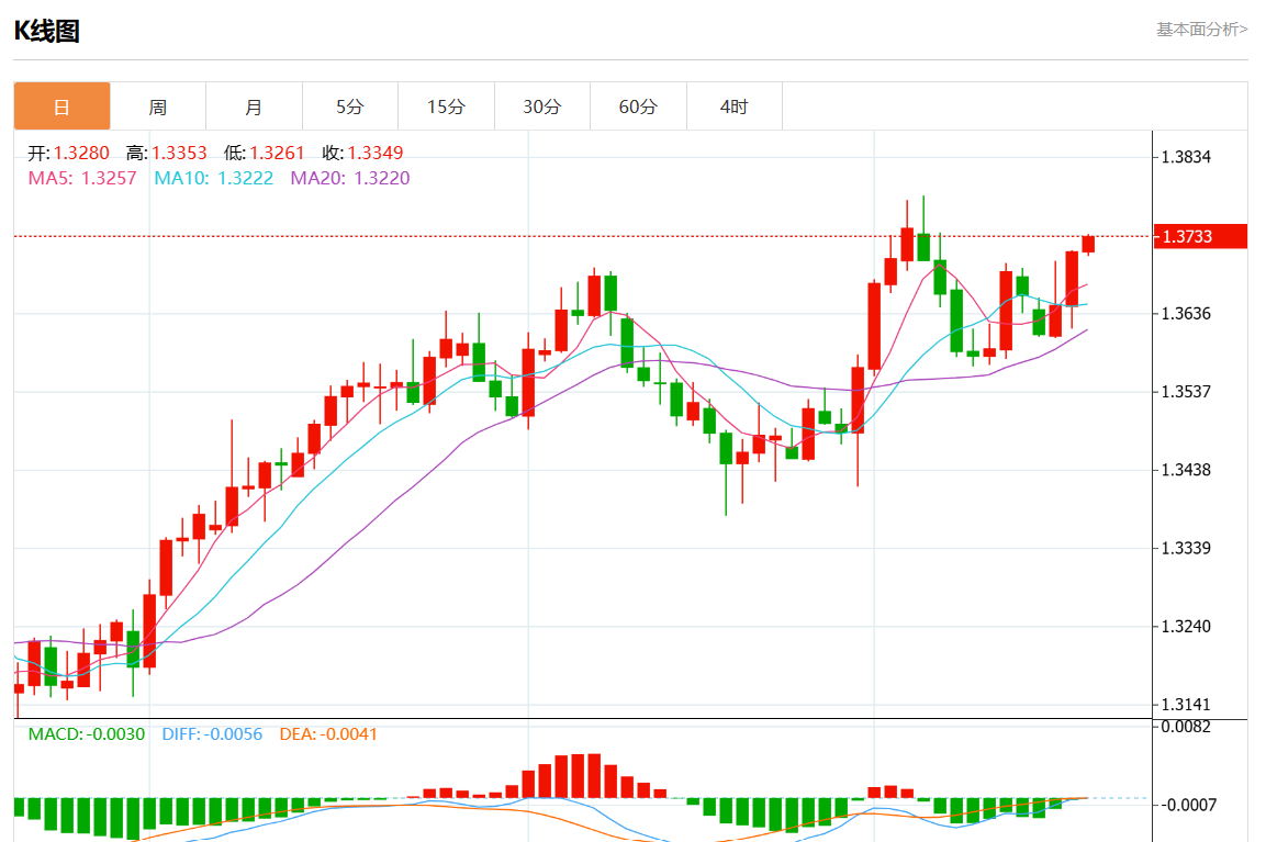 周四盘中,美元/加元报1.3725,涨幅0.08%。 今日分析:在1.3700上方建立多头头寸,目标在1.3760和1.3785。 技术点评:RI显示出上行势头。 支撑位:1.38101.37851.3760 阻力位:1.37001.36751.3655 (亚汇网编辑:静香)