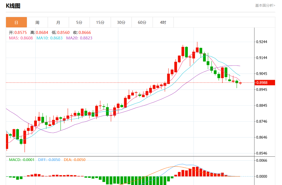 周四盘中,美元/瑞元报0.8980,跌幅0.08%。 今日分析:在0.8970上方建立多头头寸,目标在0.9000和0.9015。 技术点评:RI涨跌互现。 支撑位:0.90300.90150.9000 阻力位:0.89700.89550.8940 (亚汇网编辑:静香)