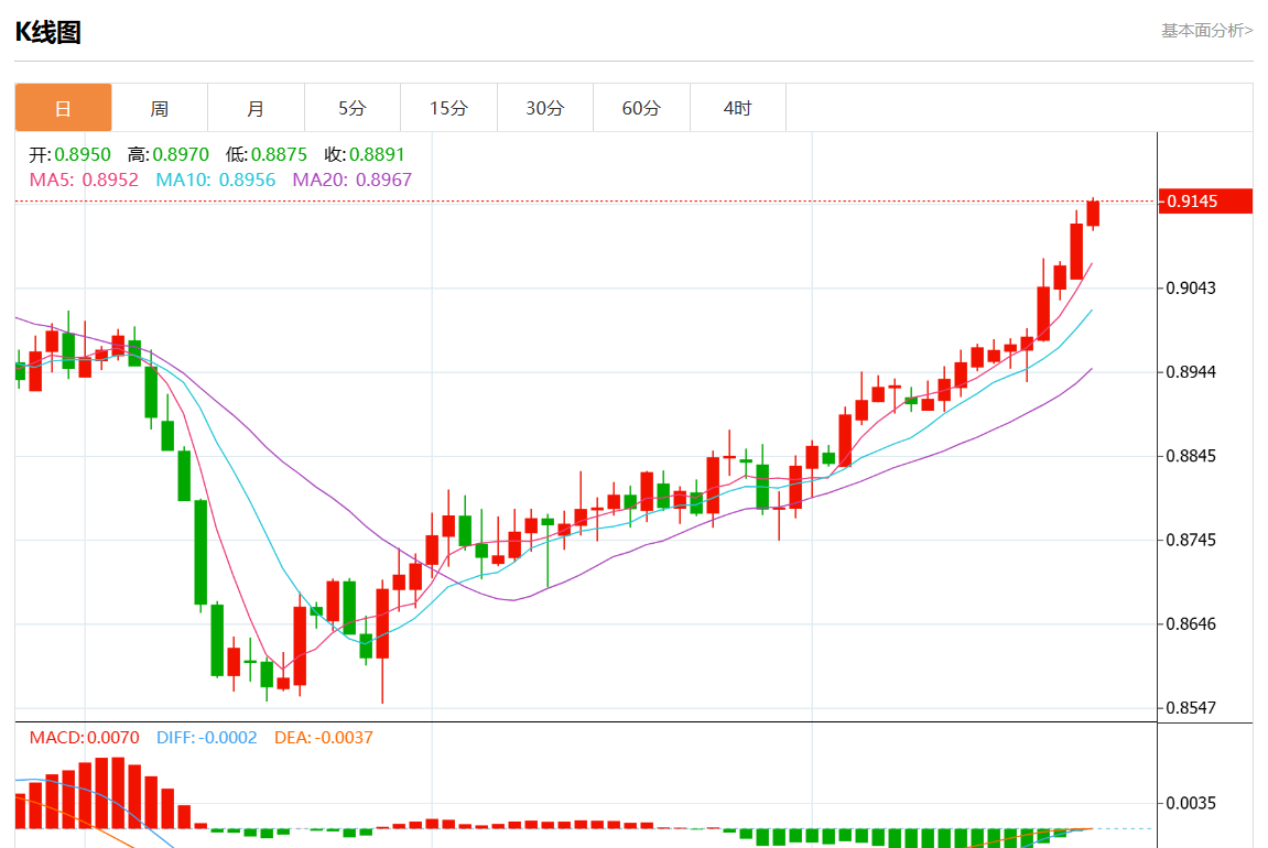 周二盘中,美元/瑞元报0.9137,涨幅0.20%。 今日分析:在0.9100上方建立多头头寸,目标在0.9150和0.9165延伸。 技术点评:RI显示出上行势头。 支撑位:0.91800.91650.9150 阻力位:0.91000.90850.9070 (亚汇网编辑:静香)
