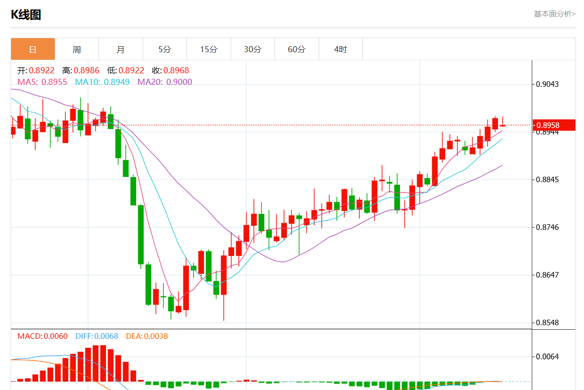 周一盘中,美元/瑞元报0.8956,跌幅0.19%。 今日分析:在0.8955上方建立多头头寸,目标在0.8985和0.9000扩展。 技术点评:RI缺乏下行动力。 支撑位:0.90150.90000.8985 阻力位:0.89550.89450.8935 (亚汇网编辑:静香)