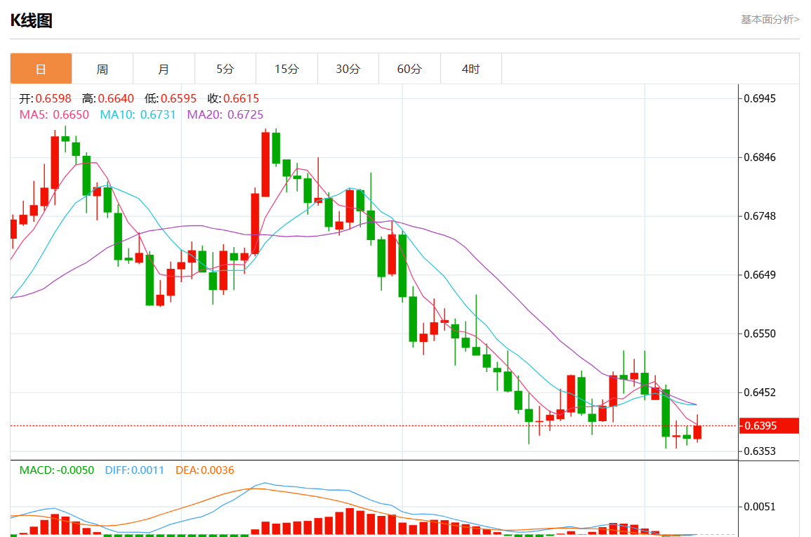 周五盘中,澳元/美元报0.6398,涨幅0.36%。 今日分析:在0.6365上方建立多头头寸,目标在0.6420和0.6435扩展。 技术点评:RI显示出上行势头。 支撑位:0.64500.64350.6420 阻力位:0.63650.63550.6340