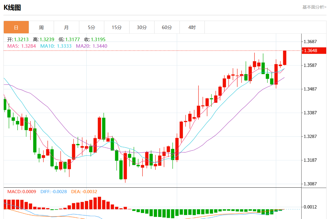周二盘中,美元/加元报1.3649,涨幅0.4%。 今日分析:在1.3585上方建立多头头寸,目标在1.3635和1.3655延伸。 技术点评:RI看涨,并呼吁进一步上涨。 支撑位:1.36751.36551.3635 阻力位:1.35851.35701.3555